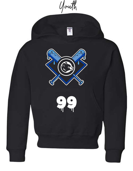 50/50 cotton/polyester fleece. Youth sizes do not have a drawstring.